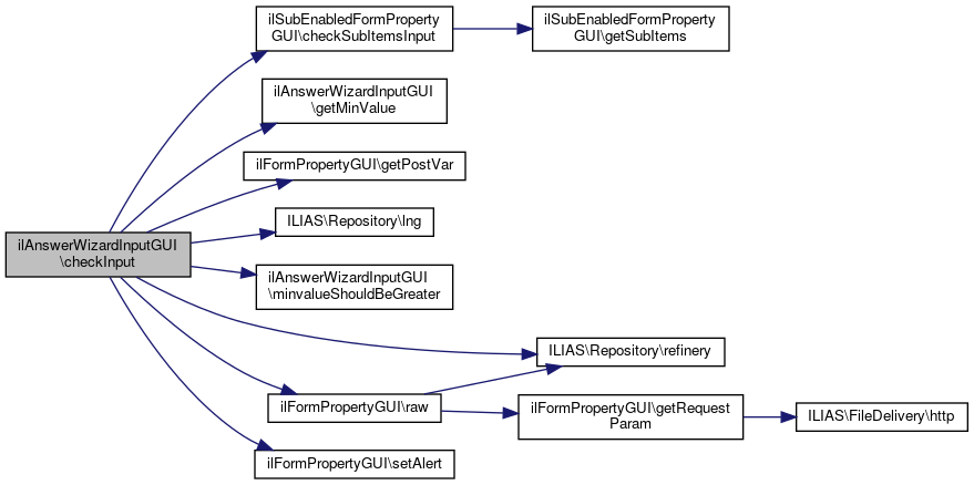 Here is the call graph for this function:| ilAnswerWizardInputGUI::checkInput | ( | ) |