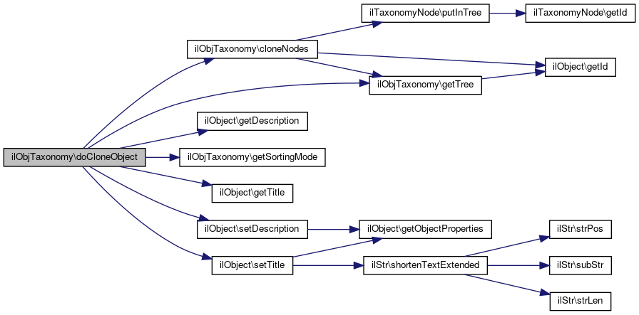 Here is the call graph for this function:| ilObjTaxonomy::cloneNodes | ( | ilObjTaxonomy | $a_new_obj, |