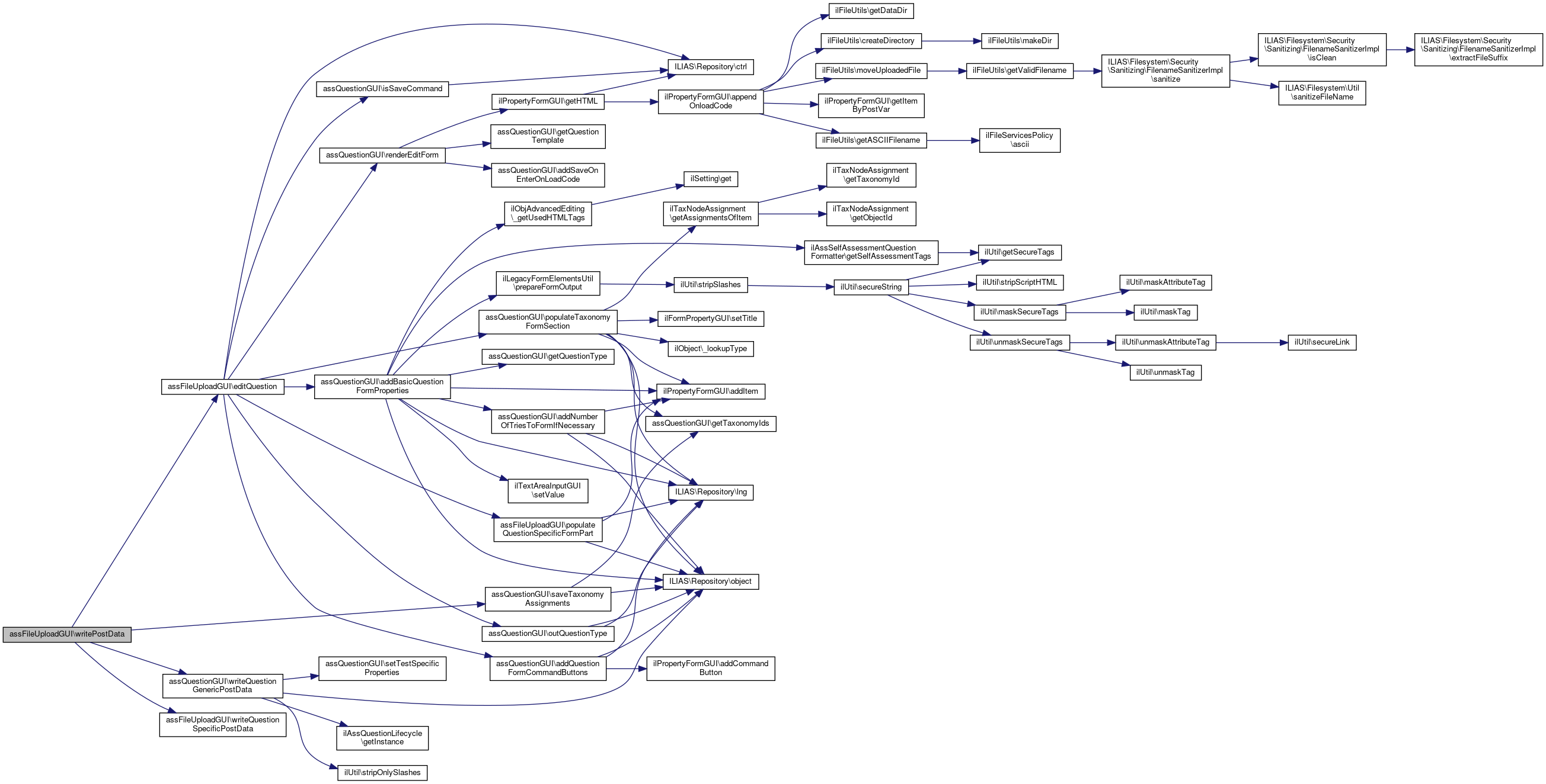 Here is the call graph for this function:| assFileUploadGUI::writeQuestionSpecificPostData | ( | ilPropertyFormGUI | $form | ) |