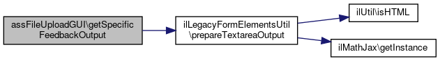 Here is the call graph for this function:| assFileUploadGUI::getSpecificFeedbackOutput | ( | array | $userSolution | ) |