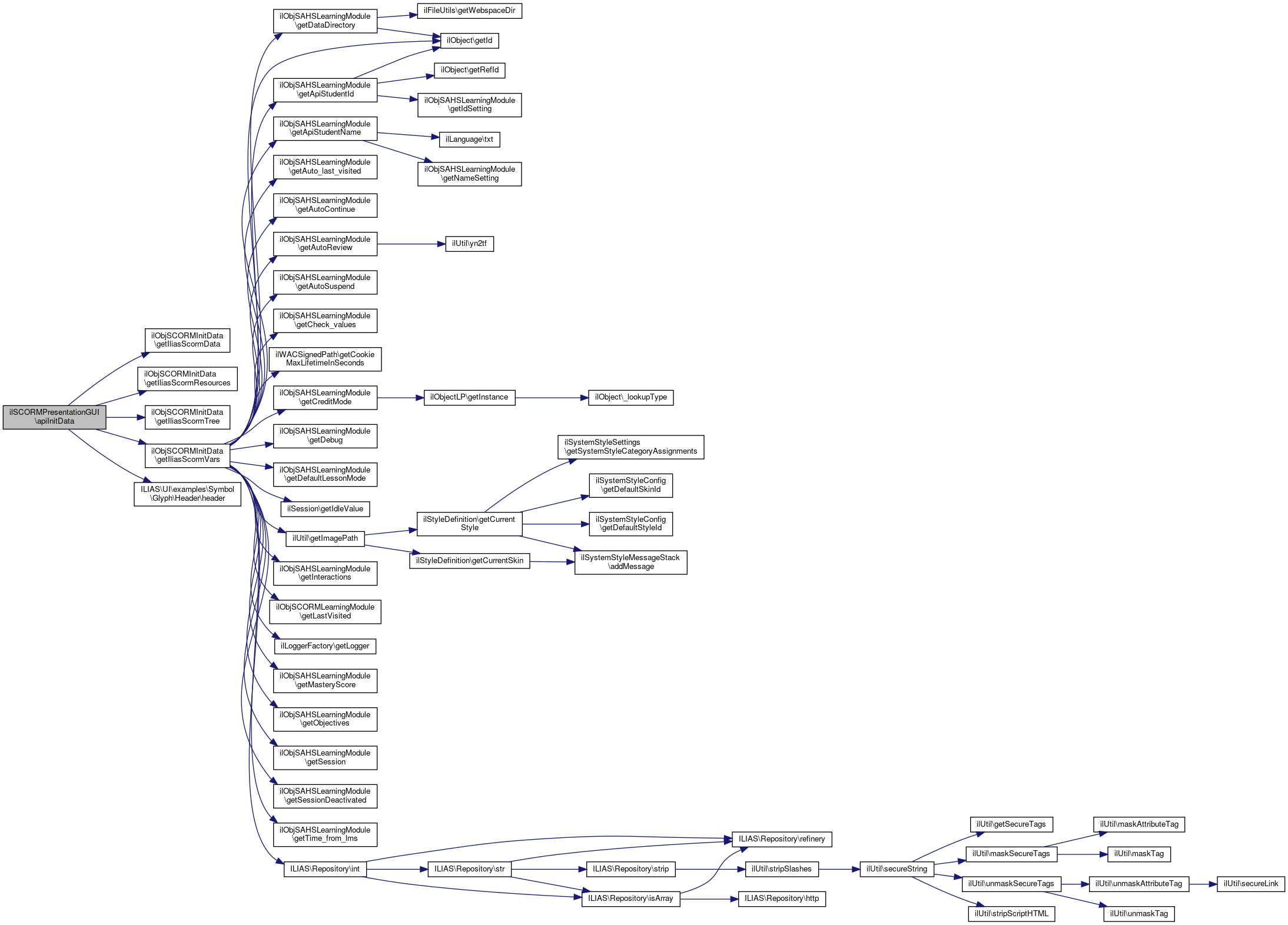 Here is the call graph for this function:| ilSCORMPresentationGUI::apiInitData | ( | ) |