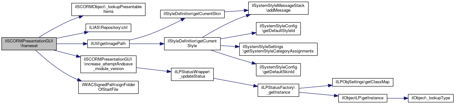 Here is the call graph for this function:| ilSCORMPresentationGUI::frameset | ( | ) |