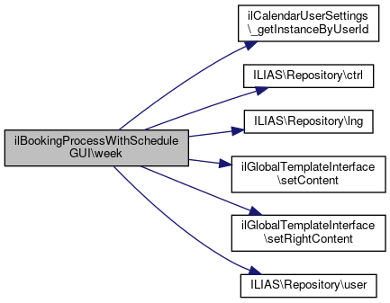 Here is the call graph for this function:| ilBookingProcessWithScheduleGUI::week | ( | ) |
