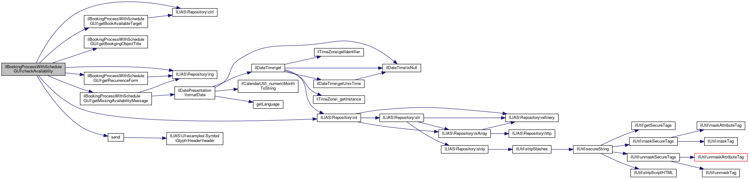 Here is the call graph for this function:| ilBookingProcessWithScheduleGUI::checkAvailability | ( | bool | $incl_recurrence = true, |