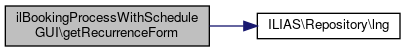 References checkAvailability(), ILIAS\Repository\ctrl(), getBookgingObjectTitle(), getNumberForm(), and getRecurrenceForm().