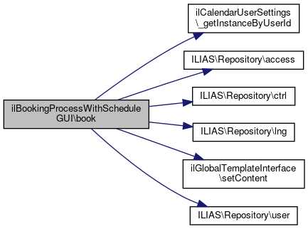 Here is the caller graph for this function:| ilBookingProcessWithScheduleGUI::book | ( | ) |
