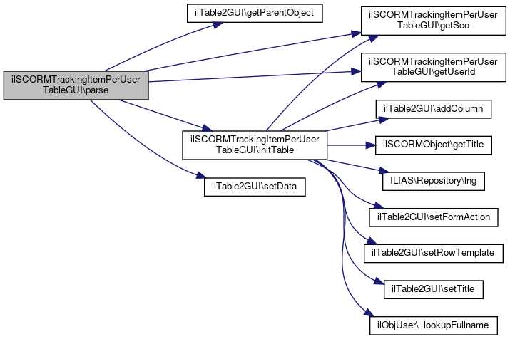 Here is the caller graph for this function:| ilSCORMTrackingItemPerUserTableGUI::parse | ( | ) |