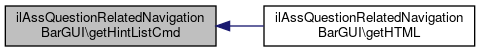 Here is the caller graph for this function:| ilAssQuestionRelatedNavigationBarGUI::getHintListCmd | ( | ) |