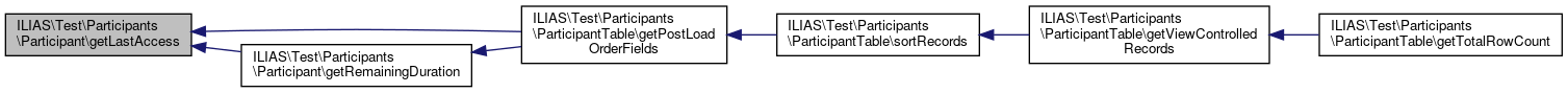 Here is the caller graph for this function:| ILIAS\Test\Participants\Participant::getLastAccess | ( | ) |