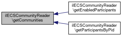 Here is the call graph for this function:| ilECSCommunityReader::getCommunities | ( | ) |