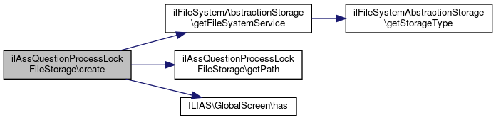 Here is the call graph for this function:| ilAssQuestionProcessLockFileStorage::create | ( | ) |