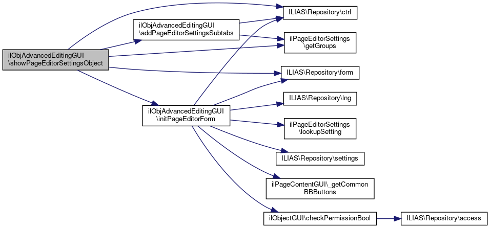Here is the call graph for this function:| ilObjAdvancedEditingGUI::showPageEditorSettingsObject | ( | ) |