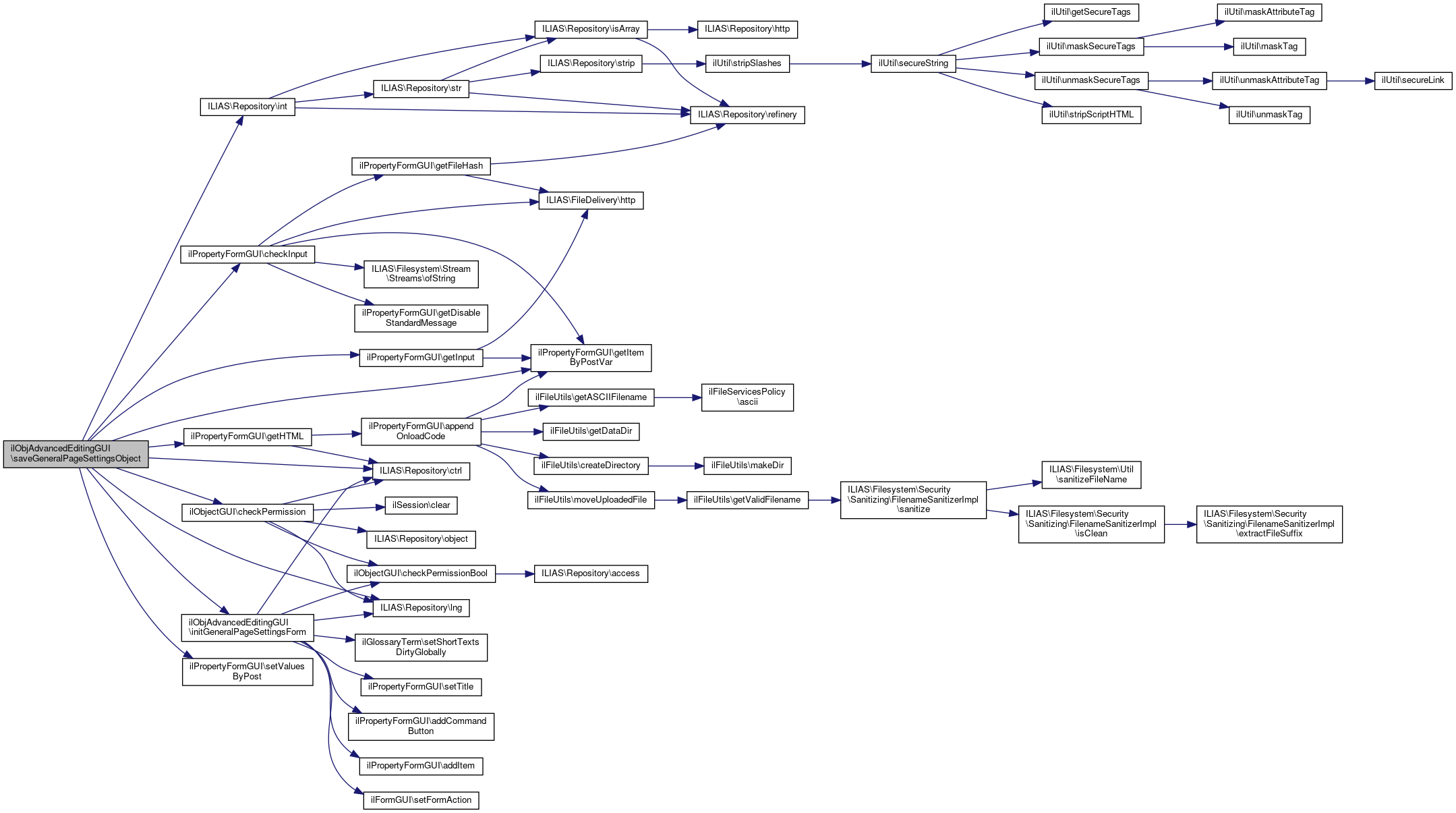 Here is the call graph for this function:| ilObjAdvancedEditingGUI::saveGeneralPageSettingsObject | ( | ) |