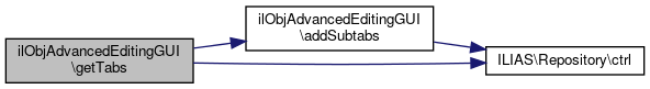 Here is the call graph for this function:| ilObjAdvancedEditingGUI::getAdminTabs | ( | ) |
