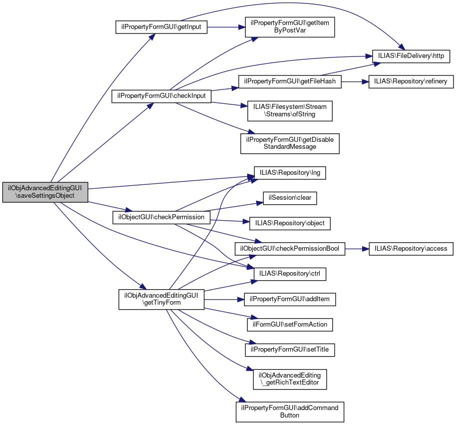 Here is the call graph for this function:| ilObjAdvancedEditingGUI::saveSettingsObject | ( | ) |