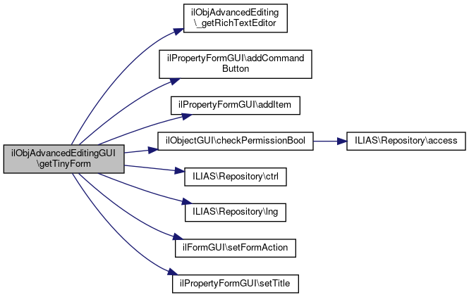 Here is the caller graph for this function:| ilObjAdvancedEditingGUI::getTinyForm | ( | ) |