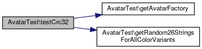 Here is the call graph for this function:| AvatarTest::testCrc32 | ( | ) |