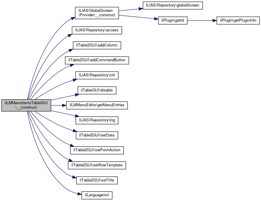 References $DIC, ilTableGUI\$lng, ILIAS\GlobalScreen\Provider\__construct(), ILIAS\Repository\access(), ilTable2GUI\addColumn(), ilTable2GUI\addCommandButton(), ILIAS\Repository\ctrl(), ilTableGUI\disable(), ilLMMenuEditor\getMenuEntries(), ILIAS\Repository\lng(), ilTable2GUI\setData(), ilTable2GUI\setFormAction(), ilTable2GUI\setRowTemplate(), ilTable2GUI\setTitle(), and ilLanguage\txt().
