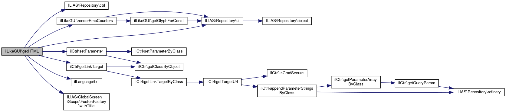 Here is the caller graph for this function:| ilLikeGUI::getHTML | ( | ) |