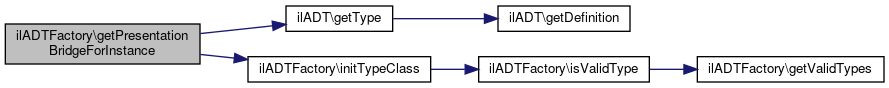 Here is the call graph for this function:| ilADTFactory::getPresentationBridgeForInstance | ( | ilADT | $a_adt | ) |