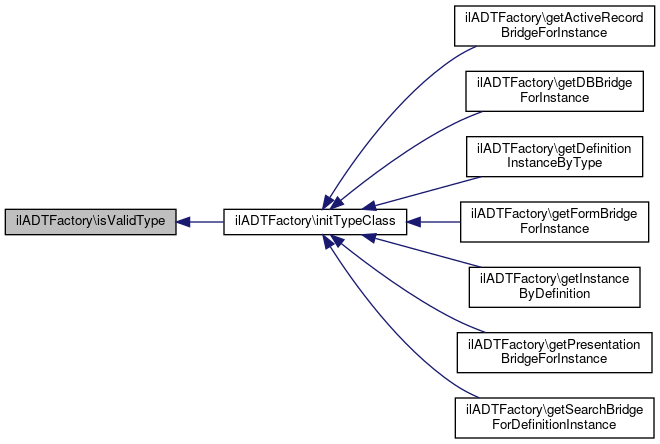 Here is the caller graph for this function:| ilADTFactory::isValidType | ( | string | $a_type | ) |