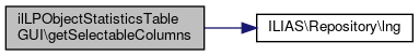 Here is the call graph for this function:| ilLPObjectStatisticsTableGUI::getSelectableColumns | ( | ) |