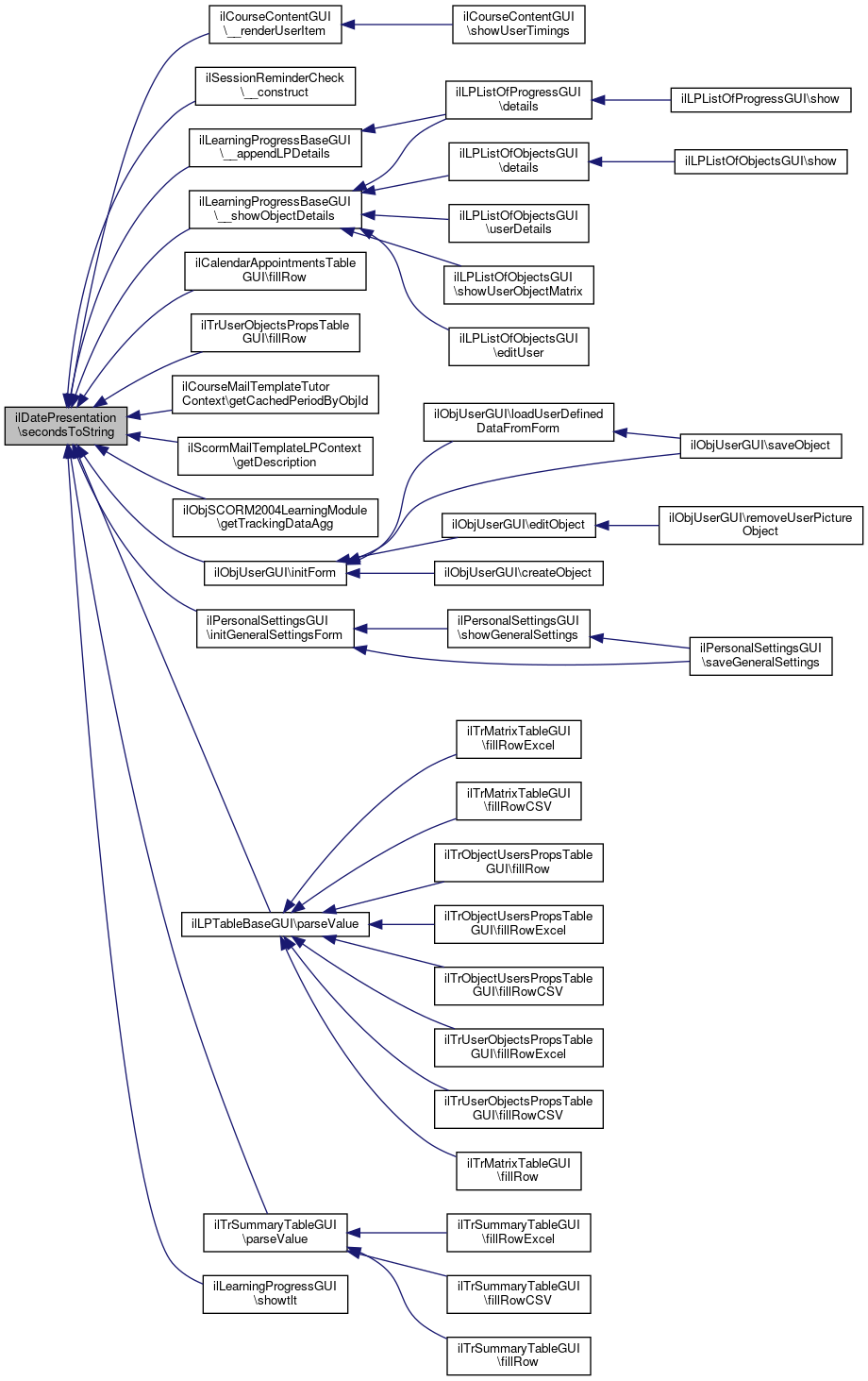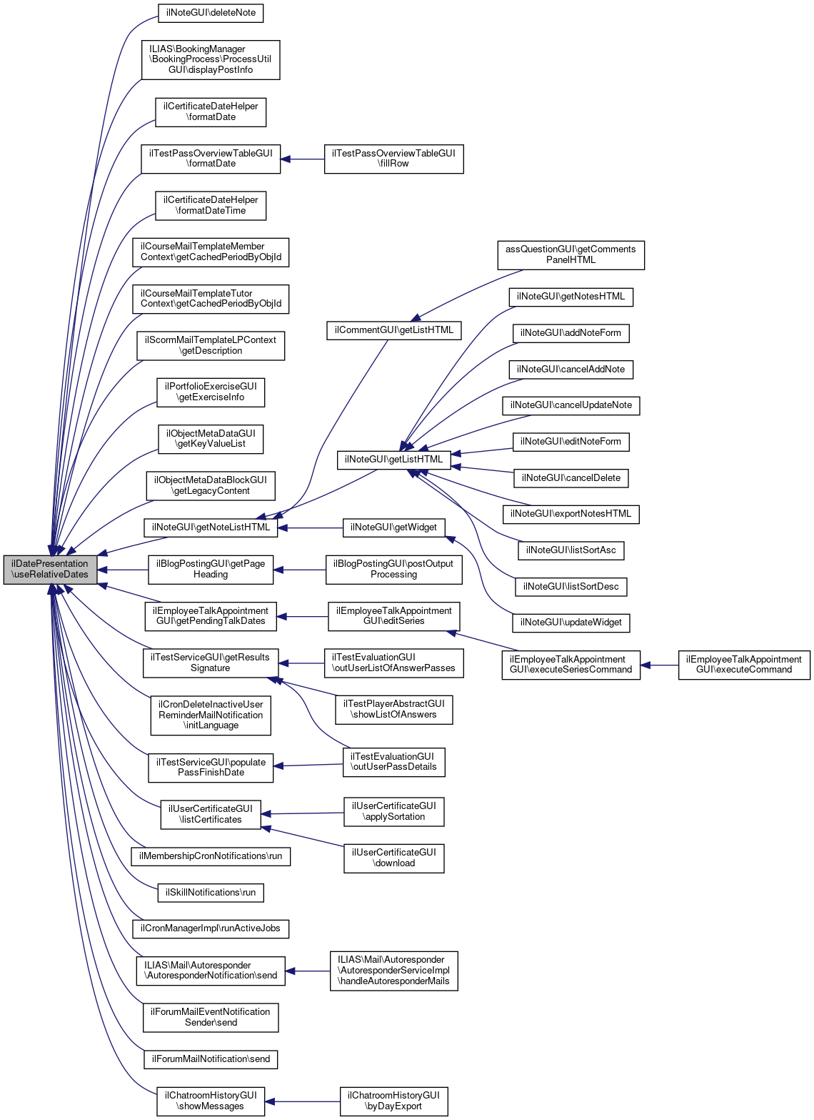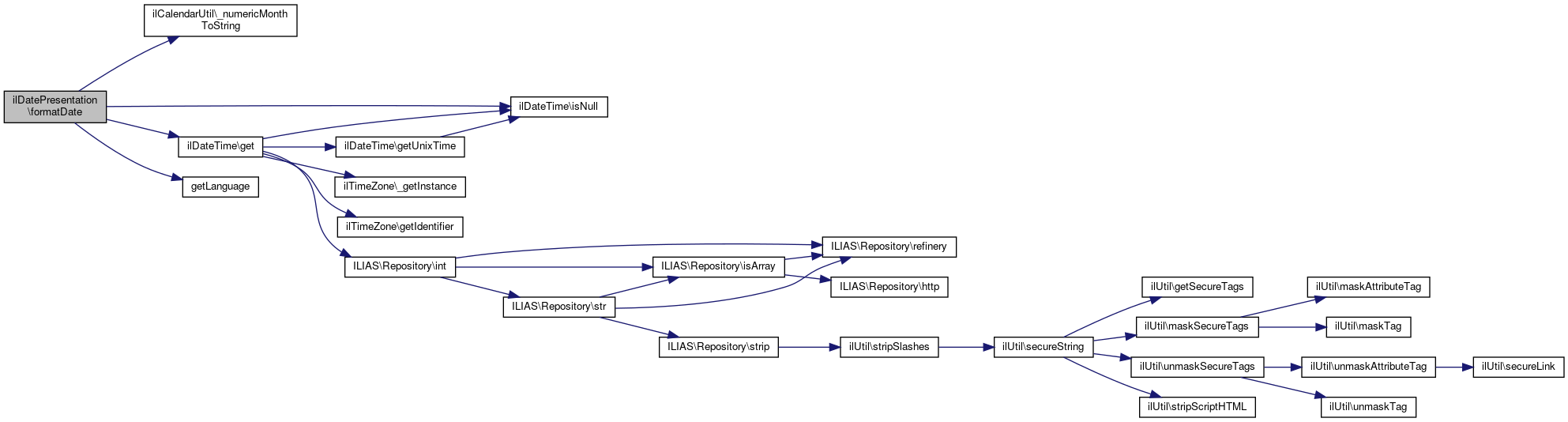 Referenced by ilLearningProgressBaseGUI\__appendLPDetails(), ilExcDeliveredFilesTableGUI\__construct(), ILIAS\Badge\Tile\__construct(), ILIAS\LegalDocuments\Table\HistoryTable\__construct(), ILIAS\LegalDocuments\Table\DocumentTable\__construct(), ILIAS\LegalDocuments\ConsumerToolbox\Blocks\__construct(), ilObjGroupAccess\_checkAccess(), ilObjCourseAccess\_checkAccess(), ilObject\_lookupLastUpdate(), ilObjRemoteFile\_lookupVersionInfo(), ilBookingInfoScreenAdapter\add(), ilObjRemoteFileGUI\addCustomInfoFields(), ilCommentGUI\addItemProperties(), ilMessageGUI\addItemProperties(), ilNoteGUI\addItemProperties(), ilAppointmentPresentationGUI\addLastUpdate(), ilBookingInfoListItemPropertiesAdapter\appendProperties(), ilObjLanguageFolderGUI\buildConfirmModal(), ILIAS\Exercise\Assignment\PropertyAndActionBuilderUI\buildHead(), ilTestRandomQuestionSetConfigStateMessageHandler\buildLastSyncMessage(), ilInfoScreenGUI\buildPublicAccessExportButton(), ILIAS\Exercise\Assignment\PropertyAndActionBuilderUI\buildSubmission(), ilAppointmentPresentationConsultationHoursGUI\collectPropertiesAndActions(), ilConsultationHoursGUI\confirmDeleteAppointments(), ilMemberExportGUI\confirmDeleteExportFile(), ilObjSurveyQuestionPoolGUI\confirmDeleteExportFileObject(), ilMailFolderGUI\confirmDeleteMails(), ilConsultationHoursGUI\confirmRejectBooking(), ILIAS\Badge\ModalBuilder\constructModal(), ilForum\convertDate(), ilForumMailNotification\createMailDate(), ilForumMailEventNotificationSender\createMailDate(), ilForumExplorerGUI\createNode(), ilPersonalSettingsGUI\deleteOwnAccountStep3(), ilObjUser\deleteUserDefinedFieldEntries(), ILIAS\Survey\Execution\LaunchGUI\determineAppraiseeInfo(), ILIAS\Survey\Execution\LaunchGUI\determineNotStartableReasons(), ilObjForumGUI\doHistoryCheck(), ilExPeerReviewGUI\editPeerReviewObject(), ilTestPlayerAbstractGUI\endingTimeReached(), ilSurveyEvaluationGUI\evaluation(), ilSessionStatisticsGUI\exportCSV(), ilSurveyEvaluationGUI\exportEvaluationUser(), ilECSSetting\fetchCertificateExpiration(), ilCourseRegistrationGUI\fillRegistrationPeriod(), ilGroupRegistrationGUI\fillRegistrationPeriod(), ilECSExportedContentTableGUI\fillRow(), ilAdvancedMDRecordExportFilesTableGUI\fillRow(), ilTestPersonalDefaultSettingsTableGUI\fillRow(), ilECSImportedContentTableGUI\fillRow(), ilSubItemSelectionTableGUI\fillRow(), ilECSServerTableGUI\fillRow(), ilCalendarInboxSharedTableGUI\fillRow(), ilCalendarChangedAppointmentsTableGUI\fillRow(), ilHistoryTableGUI\fillRow(), ilNewsForContextTableGUI\fillRow(), ilMemberExportFileTableGUI\fillRow(), ilSurveyCodesTableGUI\fillRow(), ILIAS\Test\Scoring\Manual\TestScoringByParticipantPassesOverviewTableGUI\fillRow(), ilHelpModuleTableGUI\fillRow(), ilWikiContributorsTableGUI\fillRow(), ilExportSelectionTableGUI\fillRow(), ilPageHistoryTableGUI\fillRow(), ilMediaCastTableGUI\fillRow(), ilSurveyMaintenanceTableGUI\fillRow(), ilSurveyResultsUserTableGUI\fillRow(), assFileUploadFileTableGUI\fillRow(), ilWikiRecentChangesTableGUI\fillRow(), ilSCORMTrackingUsersTableGUI\fillRow(), ilSurveyAppraiseesTableGUI\fillRow(), ilSearchResultTableGUI\fillRow(), ilExAssignmentTeamLogTableGUI\fillRow(), ilGroupParticipantsTableGUI\fillRow(), ilExportTableGUI\fillRow(), ilUserLPTableGUI\fillRow(), ilExAssignmentListTextTableGUI\fillRow(), ilFileVersionsTableGUI\fillRow(), ilCmiXapiStatementsTableGUI\fillRow(), ilPDNewsTableGUI\fillRow(), ilAssignmentsTableGUI\fillRow(), ilLTIConsumerGradeSynchronizationTableGUI\fillRow(), ilQuestionPoolPrintViewTableGUI\fillRow(), ilCourseParticipantsTableGUI\fillRow(), ilSubscriberTableGUI\fillRow(), ilAdminSubItemsTableGUI\fillRow(), ilEmployeeTalkTableGUI\fillRow(), ilRepositoryUserResultTableGUI\fillRow(), ilWaitingListTableGUI\fillRow(), ilTrashTableGUI\fillRow(), ilSurveyQuestionbrowserTableGUI\fillRow(), ilSurveyQuestionsTableGUI\fillRow(), ilCronManagerTableGUI\fillRow(), ilWikiPagesTableGUI\fillRow(), ilLPProgressTableGUI\fillRow(), ilTrUserObjectsPropsTableGUI\fillRow(), ilWorkspaceShareTableGUI\fillRow(), ilQuestionBrowserTableGUI\fillRow(), ilTrObjectUsersPropsTableGUI\fillRow(), ilTrMatrixTableGUI\fillRow(), ilUserTableGUI\fillRow(), ilBookingReservationsTableGUI\fillRow(), ilLPProgressTableGUI\fillRowCSV(), ilBookingReservationsTableGUI\fillRowCSV(), ilWebDAVMountInstructionsDocumentTableGUI\formatCellValue(), ilCertificateDateHelper\formatDate(), ILIAS\AdministrativeNotification\DataRetrieval\formatDate(), ilTestPassOverviewTableGUI\formatDate(), ilCertificateDateHelper\formatDateTime(), ilCmiXapiHighscoreReport\formatRawTimestamp(), ilCronManagerTableGUI\formatStatusInfo(), ilObjTestGUI\forwardToInfoScreen(), ILIAS\Calendar\ConsultationHours\BookingCancellationGUI\getAppointmentTitle(), ILIAS\OnScreenChat\Provider\OnScreenChatProvider\getAsyncItem(), ilGroupMembershipGUI\getAttendanceListUserData(), ilPageObjectGUI\getBlockingInfoMessage(), ilCourseMailTemplateMemberContext\getCachedPeriodByObjId(), ilCourseMailTemplateTutorContext\getCachedPeriodByObjId(), ilStudyProgrammeAutoMembershipsTableGUI\getDatePresentation(), ilScormMailTemplateLPContext\getDescription(), ilPublicUserProfileGUI\getEmbeddable(), ilPersonalSkillsGUI\getEvalItem(), ilPortfolioExerciseGUI\getExerciseInfo(), ilLPTableBaseGUI\getExportMeta(), ilPollContentRenderer\getFormattedDate(), ILIAS\BookingManager\BookingProcess\WeekGridGUI\getHoursOfDay(), ilADTDatePresentationBridge\getHTML(), ilADTDateTimePresentationBridge\getHTML(), ilCalendarHeaderNavigationGUI\getHTML(), ILIAS\BookingManager\BookingProcess\WeekGUI\getHTML(), ilCalendarAgendaListGUI\getHTML(), ilAttendanceList\getHTML(), ilNewsForContextBlockGUI\getInfoForData(), ilNoteGUI\getItemForNote(), ilRegistrationCodesTableGUI\getItems(), ilBookingObjectsTableGUI\getItems(), ilUserTableGUI\getItems(), ilNoteGUI\getItemTitle(), ILIAS\Test\Presentation\TestScreenGUI\getLauncher(), ilPDMailBlockGUI\getListItemForData(), ilPDTasksBlockGUI\getListItemForData(), ilBookingProcessWithScheduleGUI\getMissingAvailability