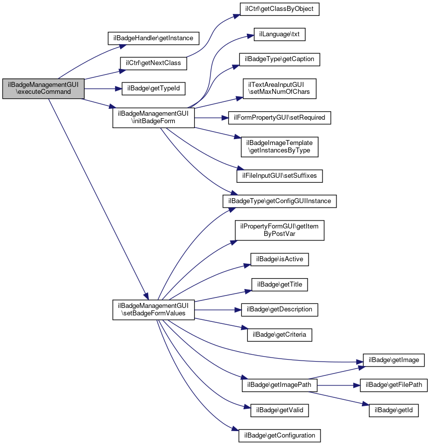 Here is the caller graph for this function:| ilBadgeManagementGUI::executeCommand | ( | ) |