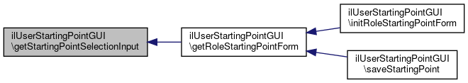 Here is the caller graph for this function:| ilUserStartingPointGUI::initRoleStartingPointForm | ( | ilPropertyFormGUI | $form = null | ) |