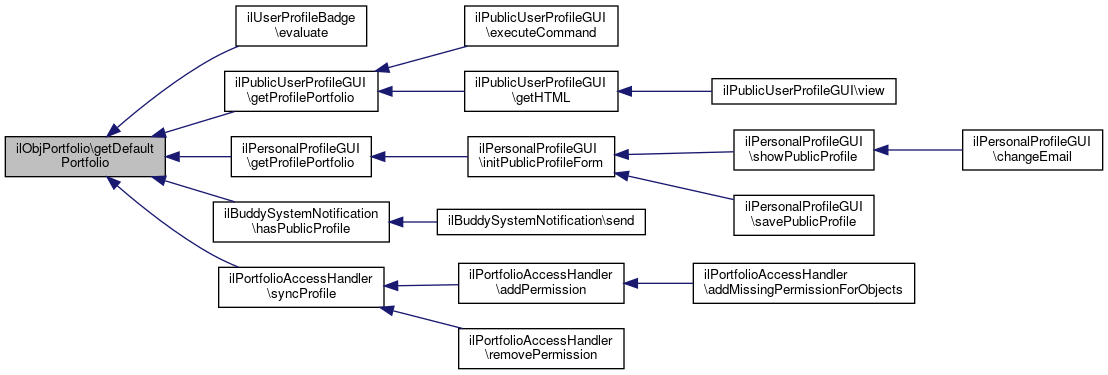 Referenced by ilUserProfileBadge\evaluate(), ilPublicUserProfileGUI\getProfilePortfolio(), ilPersonalProfileGUI\getProfilePortfolio(), ilBuddySystemNotification\hasPublicProfile(), and ilPortfolioAccessHandler\syncProfile().