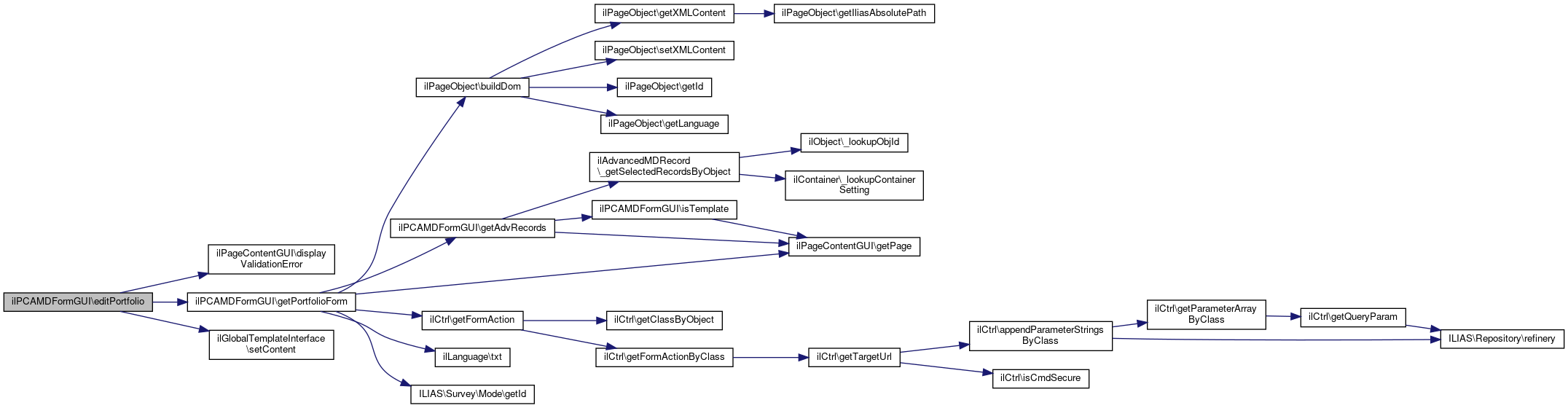 Here is the call graph for this function:| ilPCAMDFormGUI::editPortfolio | ( | ?ilPropertyFormGUI | $form = null | ) |