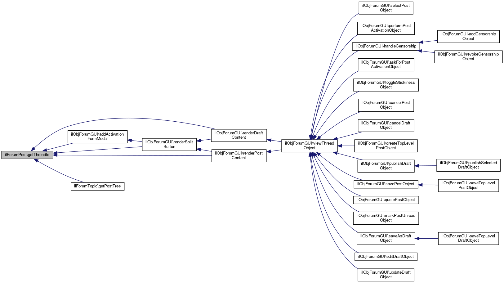 Here is the caller graph for this function:| ilForumPost::setThread | ( | ilForumTopic | $thread | ) |