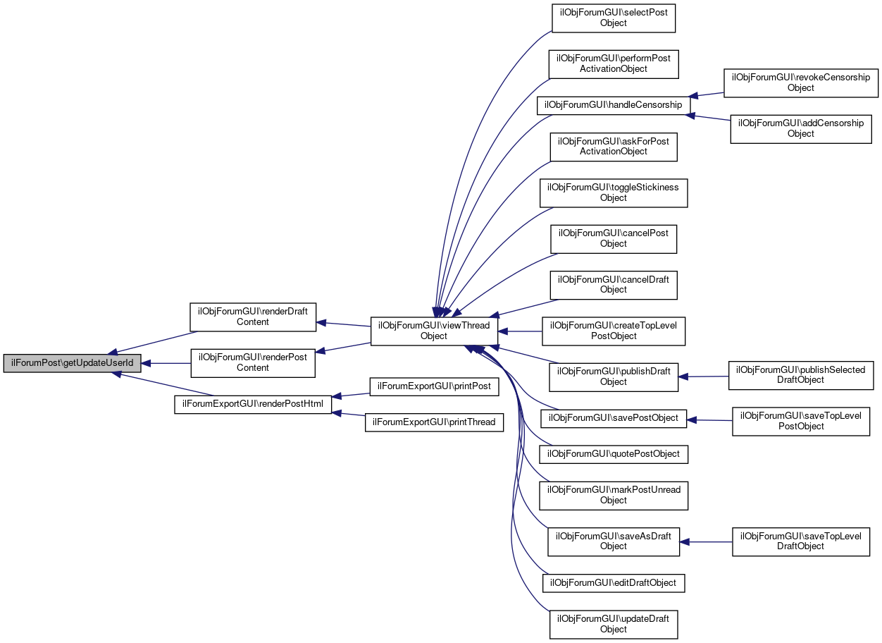 Here is the caller graph for this function:| ilForumPost::setUpdateUserId | ( | int | $a_user_id_update | ) |