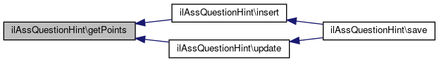 Here is the call graph for this function:| ilAssQuestionHint::setPoints | ( | $points | ) |