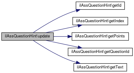 Here is the call graph for this function:| ilAssQuestionHint::setText | ( | $text | ) |