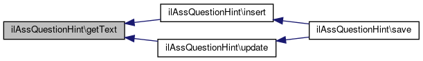 Here is the caller graph for this function:| ilAssQuestionHint::getText | ( | ) |