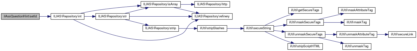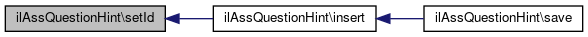 Here is the call graph for this function:| ilAssQuestionHint::setId | ( | $id | ) |