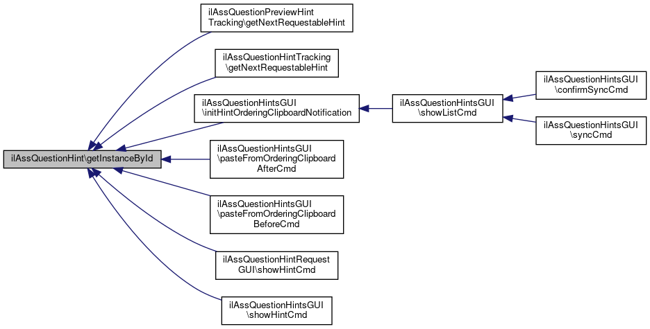 Referenced by ilAssQuestionPreviewHintTracking\getNextRequestableHint(), ilAssQuestionHintTracking\getNextRequestableHint(), ilAssQuestionHintsGUI\initHintOrderingClipboardNotification(), ilAssQuestionHintsGUI\pasteFromOrderingClipboardAfterCmd(), ilAssQuestionHintsGUI\pasteFromOrderingClipboardBeforeCmd(), ilAssQuestionHintRequestGUI\showHintCmd(), and ilAssQuestionHintsGUI\showHintCmd().