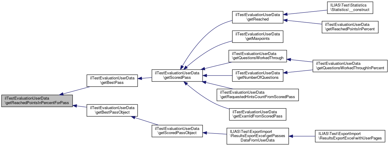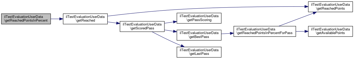 Here is the call graph for this function:| ilTestEvaluationUserData::getReachedPointsInPercentForPass | ( | int | $pass = 0 | ) |