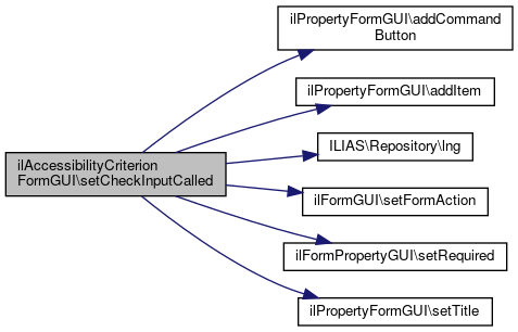 Here is the call graph for this function:| ilAccessibilityCriterionFormGUI::setCheckInputCalled | ( | bool | $status | ) |