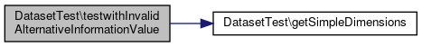 Here is the call graph for this function:| DatasetTest::testwithInvalidAlternativeInformationValue | ( | ) |