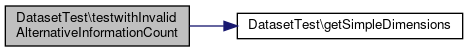 Here is the call graph for this function:| DatasetTest::testwithInvalidAlternativeInformationCount | ( | ) |