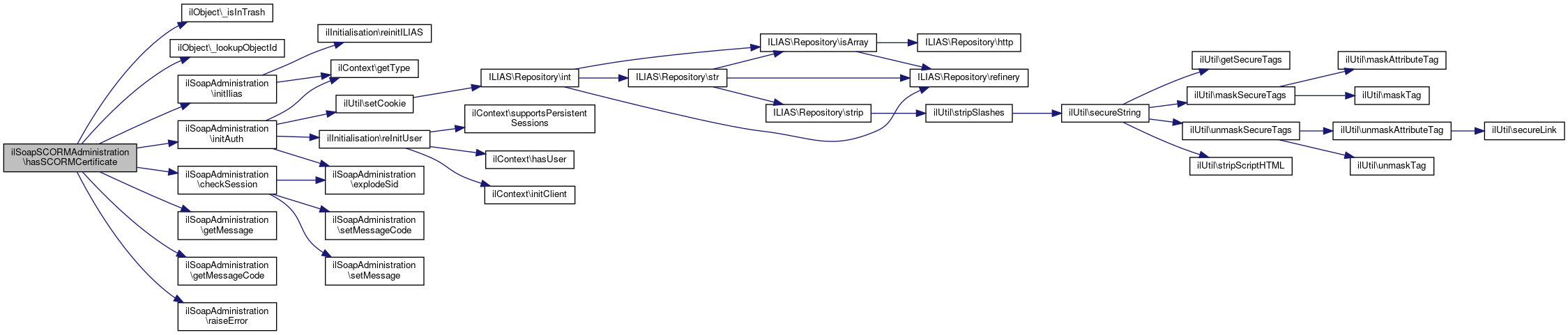 Here is the call graph for this function:| ilSoapSCORMAdministration::hasSCORMCertificate | ( | string | $sid, |