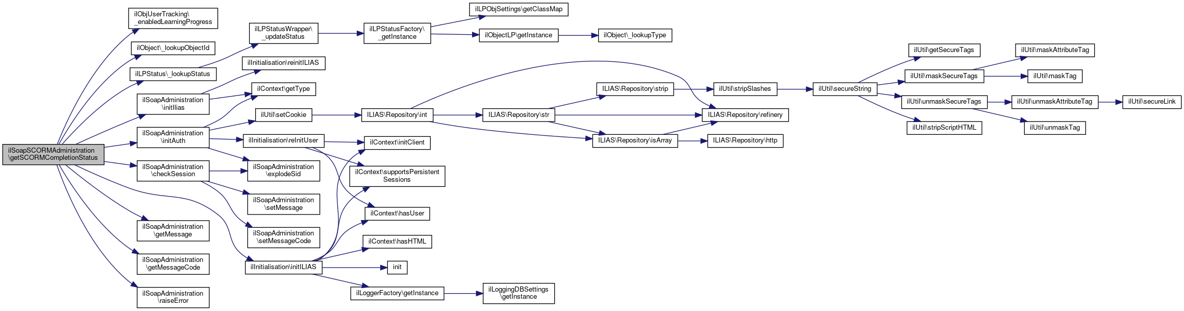 Here is the call graph for this function:| ilSoapSCORMAdministration::getSCORMCompletionStatus | ( | string | $sid, |
