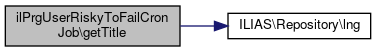 Here is the caller graph for this function:| ilPrgUserRiskyToFailCronJob::getTitle | ( | ) |