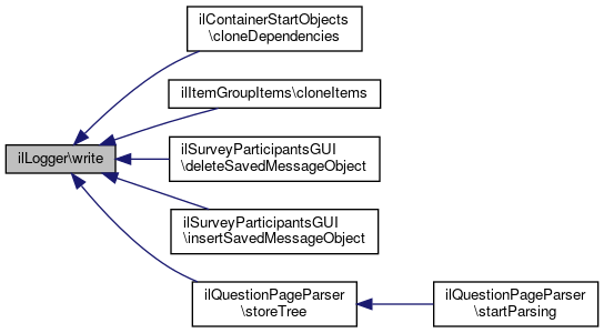 Here is the caller graph for this function:| ilLogger::write | ( | string | $message, |