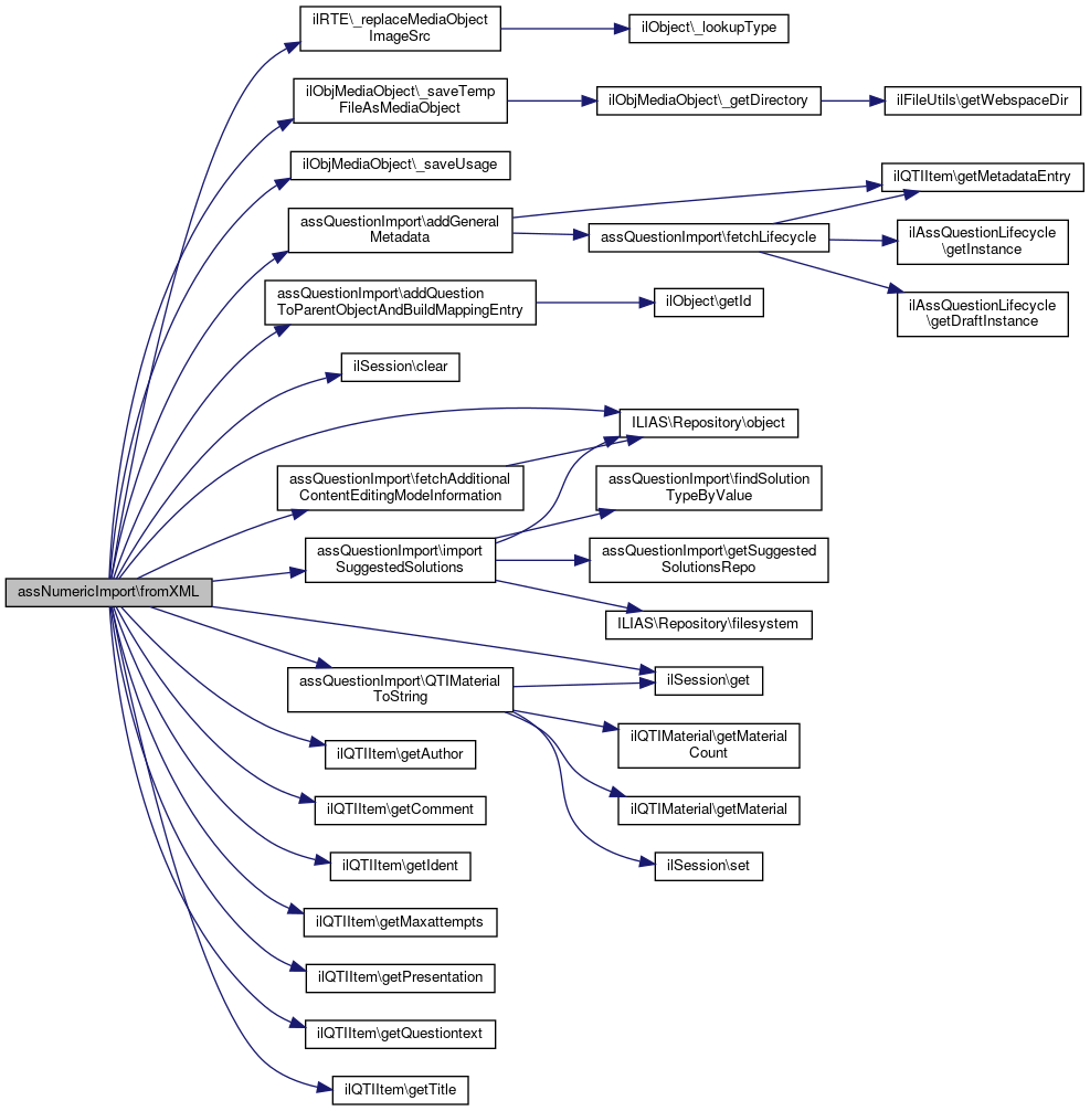 References $DIC, $response, ilRTE\_replaceMediaObjectImageSrc(), ilObjMediaObject\_saveTempFileAsMediaObject(), ilObjMediaObject\_saveUsage(), assQuestionImport\addGeneralMetadata(), assQuestionImport\addQuestionToParentObjectAndBuildMappingEntry(), ilSession\clear(), assQuestionImport\fetchAdditionalContentEditingModeInformation(), ilSession\get(), ilQTIItem\getAuthor(), ilQTIItem\getComment(), ilQTIItem\getIdent(), ilQTIItem\getMaxattempts(), ilQTIItem\getPresentation(), ilQTIItem\getQuestiontext(), ilQTIItem\getTitle(), IL_INST_ID, assQuestionImport\importSuggestedSolutions(), ILIAS\Repository\object(), and assQuestionImport\QTIMaterialToString().