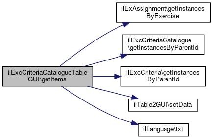 References ilTableGUI\$data, ilTableGUI\$lng, ilExAssignment\getInstancesByExercise(), ilExcCriteriaCatalogue\getInstancesByParentId(), ilExcCriteria\getInstancesByParentId(), ilTable2GUI\setData(), and ilLanguage\txt().