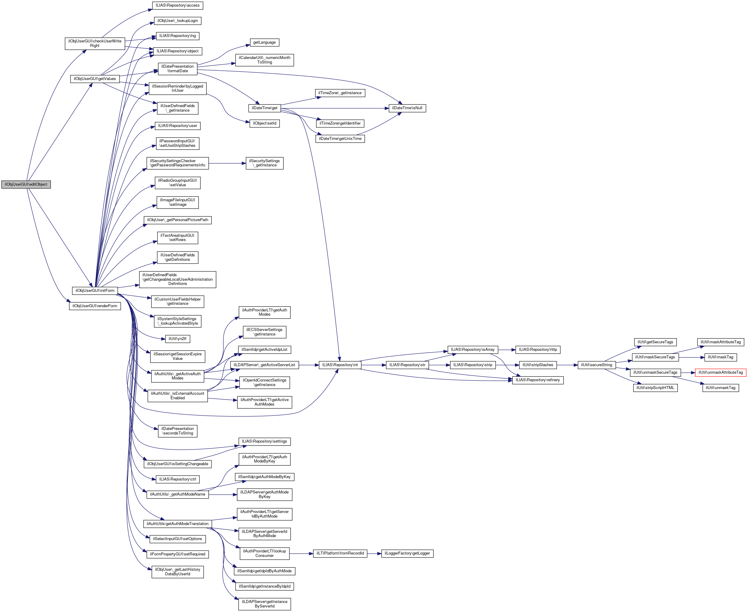 Here is the call graph for this function:| ilObjUserGUI::editObject | ( | ) |