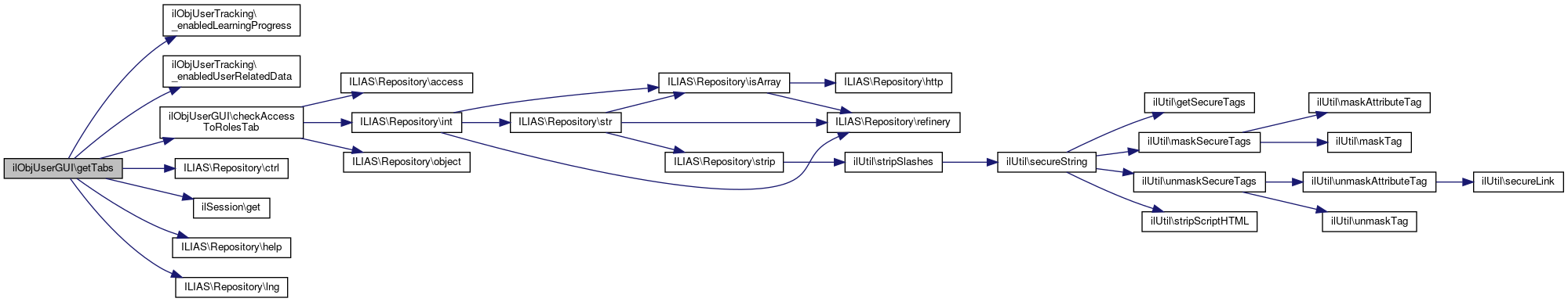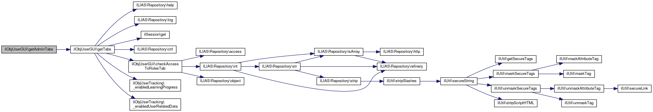 Here is the call graph for this function:| ilObjUserGUI::getAdminTabs | ( | ) |